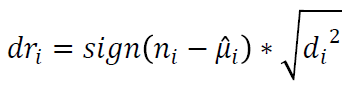 La adecuación de estos modelos puede ser analizada a través de los residuos, los cuales indican cuan próximos se encuentran el valor observado y el estimado. Un tipo particular, son los residuos de desviación, que, para el caso de un modelo de regresión binomial negativa, estaría definido como (Urbieta et al., 2017):