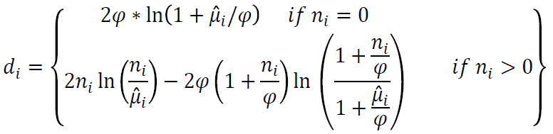 (6)donde ϕ es el parámetro de dispersión, ni es el valor de conteo observado