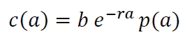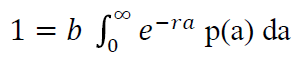 Donde c(a) es el número de individuos a la edad . (coeficiente de distri- bución por edad); . es la tasa de natalidad; . es la tasa de crecimiento y p(a) es la probabilidad de que una persona de edad 0 llegue con vida a la edad . Si se asume que todos los individuos de la población están distribuidos entre las edades 0 e ∞, y que el total de individuos representan la unidad, al integrar los dos lados de la ecuación, se tiene: