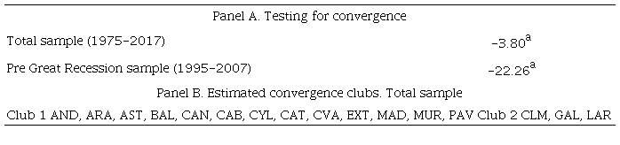 The results we have obtained are presented in Panel A of Table 2. This table reflects the results for the total IMR. We have also considered the pre-Great Recession sample (1975-2007). We can first observe that the null hypothesis of convergence is rejected for both samples. This leads us to conclude that the IMRs of the Spanish regions do not follow a single pattern of behavior.