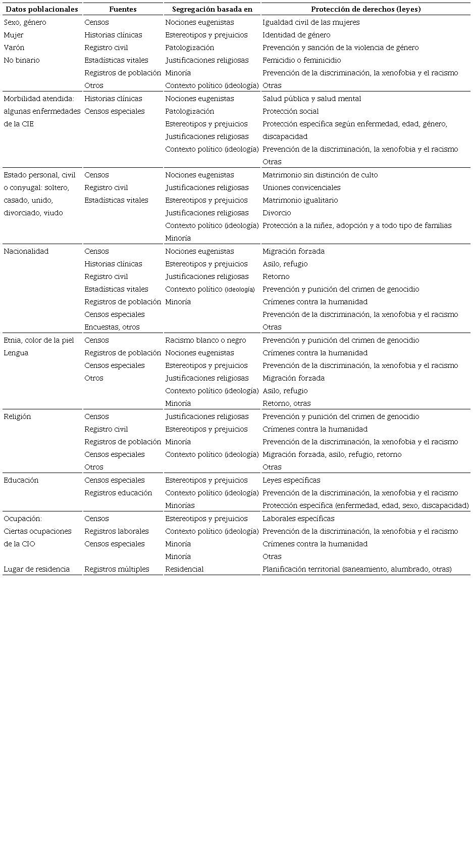 El Esquema 1 recorta las variables vulnerables según tipos de segregación lo que podría coadyuvar a que los controladores -cámaras y poder ejecutivo- de cada país adviertan la necesidad de actualización de los marcos legales vigentes para prevenir el ejercicio abusivo de su poder mediante criterios poblacionistas, maltusianos, natalistas, inmigración selectiva, aborto selectivo por sexo u otro criterio de segregación demográfica gubernamental prefijado sobre todo en periodos autoritarios, aunque también en contextos democráticos pues la mayoría de las naciones del mundo cuentan con el recurso legal que les permite declarar el estado de excepción u otras intervenciones estatales similares.