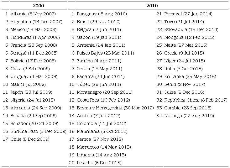 Sobre la Convención Internacional para la Protección de todas las Personas contra la Desaparición Forzada (CED) adoptada por la Asamblea General de Naciones Unidas el 20 de diciembre de 2006, la norma entró en vigor cuatro años después, el 20 de diciembre de 2010 con una totalidad de 98 estados signatarios y 63 partes5 (Tabla 2).