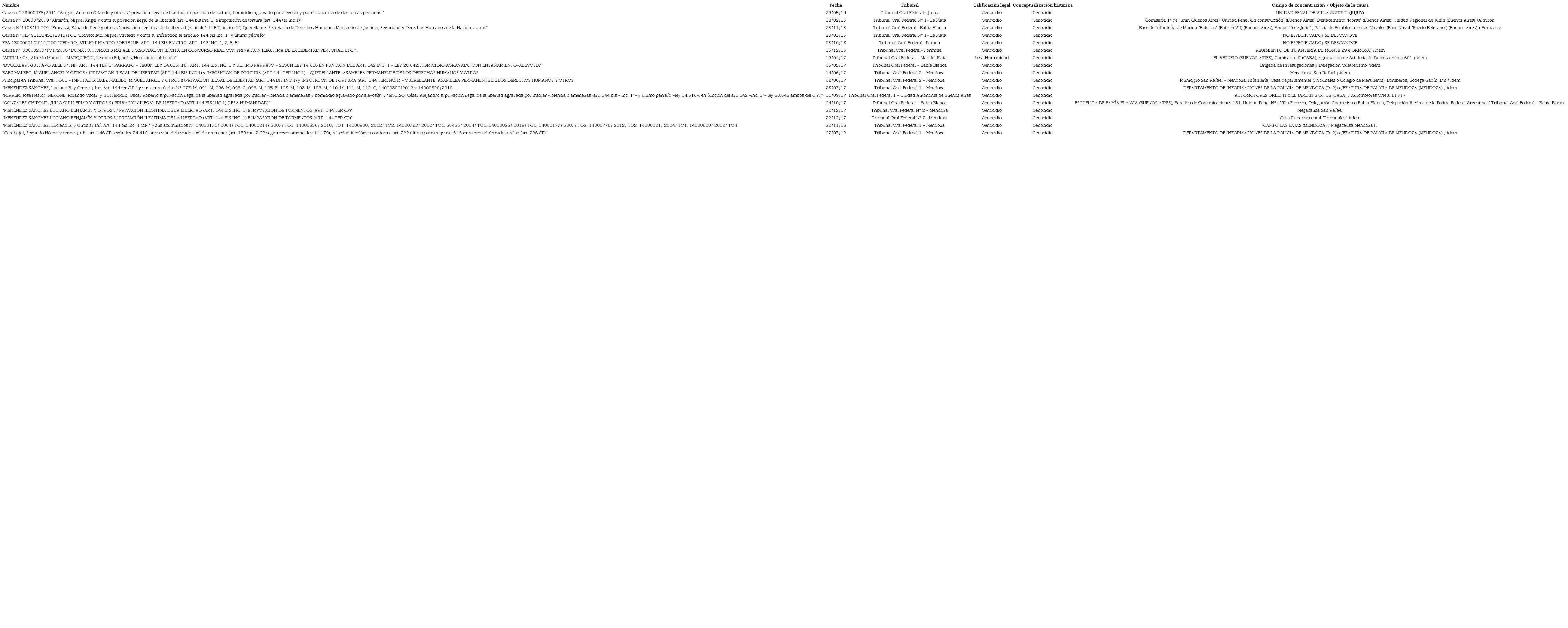 Centro de Estudios sobre Genocidio, s./f., Base de datos online de crímenes de Estado. Disponible en línea en la dirección: http://crimenesdeestado.untref.edu.ar/busqueda-avanzada .