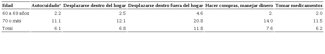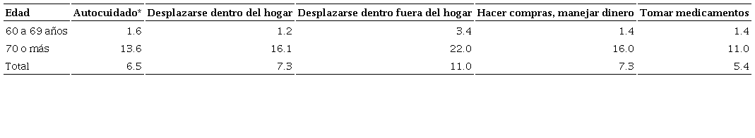 La capacidad funcional o funcionalidad de las personas de la tercera edad es un factor importante que puede ser un obstáculo para acceder a los servicios de salud. El grado de dependencia aumenta con la edad, está asociado por un lado con la dificultad para realizar activades básicas de la vida (ABD) diaria como; caminar, bañarse, acostarse o levantarse de la cama, por otro con la dificultad para realizar actividades instrumentales (AIBD) como la preparación y la compra de alimentos, la administración de medicamentos, el manejo de dinero. La necesidad de ayuda aumenta con la dificultad para realizar las ABD y las AIBD (López-Ortega y Franco, 2019). La población de la tercera edad requiere más ayuda para realizar actividades instrumentales, la proporción oscila entre 80 y 90 por ciento, en cambio en el caso de las actividades básicas la población que recibe ayuda representa 62 por ciento.