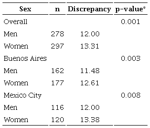 A discrepancy analysis was performed to statistically evaluate if there are gender differences in the dual trajectories. As mentioned before, the pairwise distances required for the study were computed with optimal matching, using an indel cost of one and a substitution cost based on transition rates observed in the data. I performed sensitivity analyses by using indel costs of 0.5 and 1.5. These analyses showed similar findings. Table 4 presents the results of the study. There were significant gender differences between men and women overall and within each city analyzed. Women’s trajectories were statistically more heterogeneous than men, considering the whole sample and within each city.
