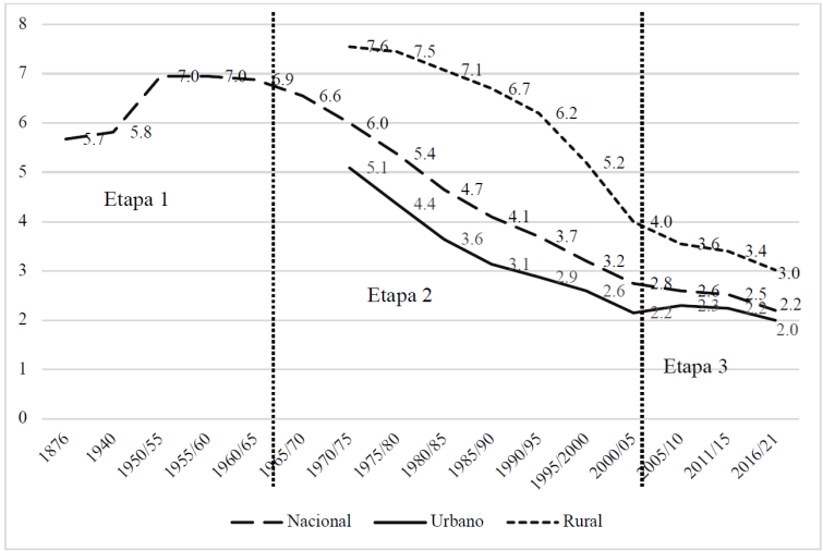 La evolución de la fecundidad a nivel nacional y en las áreas urbanas y rurales