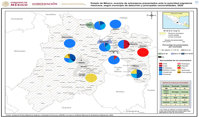 Distribución geográfica de la migración irregular en el Estado de México y municipios 2021-2022