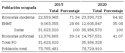 La otra economía de México: una aproximación a la economía no moderna tradicional en 2015 y 2020