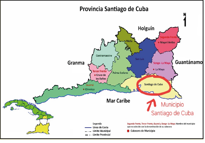 Cada una de estas familias pertenece al municipio Santiago de Cuba, territorio elegido en la investigación, a partir de que constituye la capital de la provincia (del mismo nombre). La población del municipio es de 507,167 habitantes, la mayor de la provincia (1,037,339 hab.), convirtiéndose en el segundo municipio en peso demográfico de Cuba (Figura 2). Este municipio presenta un notable grado de envejecimiento, 21.7 por ciento, algo superior a la provincia (20.9 por ciento) (ONEI, 2023a y 2023b). Estas características muestran la complejidad social del territorio para la atención de la vulnerabilidad alimentaria a escala local.