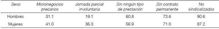 La precariedad laboral está asociada a ingresos bajos y, por lo tanto, es generadora de pobreza (Cuadro 1). A ello se suma la inexistencia de seguridad social, y dicha combinación conduce a situaciones de vulnerabilidad. Una enfermedad puede significar una catástrofe económica dados los gastos en servicios privados de salud. Las personas tienen que deshacerse de sus pertenencias, vender sus activos productivos, empeñar objetos y/o contraer deudas de difícil cancelación. Los salarios de los mercados de trabajo mexicanos hacen que el concepto trabajador pobre (“the working poor”) siga siendo útil para describir a estas mayorías que no pueden darse el lujo del desempleo, pero que no encuentran cabida en los sectores más protegidos de la estructura ocupacional. 2