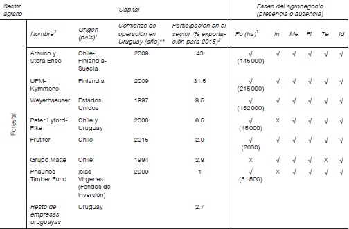 Keywords: Agribusiness, Latin America, agrarian space, foreign direct investment, transnational capital, Uruguay.