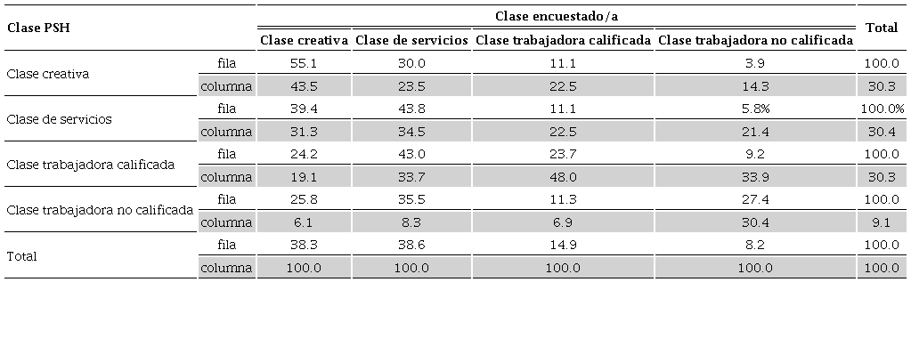 El análisis de la movilidad intergeneracional absoluta ha permitido explicar que la clase creativa se caracteriza por presentar una alta herencia, es decir, que un número importante de los descendientes de dicha clase mantienen de una generación a otra su posición de origen, lo que se sustenta, en particular, a partir de prácticas de cierre social y estrategias de reproducción. Sin embargo, al observar la composición interna de dicha clase, se descubre que es heterogénea, y que individuos con distintos orígenes (principalmente en la clase de servicios) han accedido a la cúspide de la estratificación.