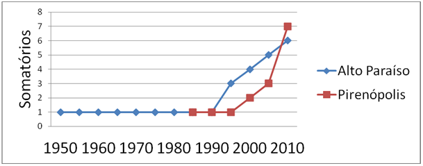 Em Pirenópolis, nota-se que duas instituições – Secretaria de Turismo e Secretaria de Educação, Esporte e Cultura – foram criadas na década de 1950 e, na década de 1980, apenas uma foi instalada – Instituto do Patrimônio Histórico e Artístico Nacional (Iphan). As demais instituições foram fundadas entre os anos 1991 e 2012. Conforme Lima (2010), de 1990 a 2010, o turismo começou a ter espaço de destaque na cidade, fato igualmente ligado ao aumento da renda dos moradores de Brasília/DF e Goiânia/GO, as capitais mais próximas à Pirenópolis.