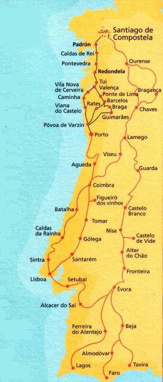 Otero (2009) refere que em Portugal, desde o século XII até aos dias de hoje, os peregrinos portugueses não deixaram de ir a Santiago, desde vilas a cidades, grandes ou pequenas, próximas ou distantes, como Braga, Porto, Coimbra, Lisboa, Santarém, Óbidos e Évora. Com os peregrinos vieram mercadores, feirantes, médicos e curandeiros, beneméritos, filósofos, clero, nobreza e o exército. Para recuperar essa velha forma de caminhar e esses velhos caminhos, tem que se refazê-los, inventá-los de novo, criar novas rotas, já não tanto para a peregrinação, mas também para o desporto e para o turismo.