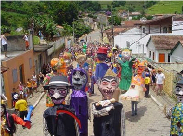A cultura popular[10] também foi um aspecto muito reconhecido, pois, no bairro, encontram-se mestre de jongo[11], cantadores de brão, responsáveis por folia de reis, grupo de congada e um contador de histórias. Além disso, muitos foram os mitos e as lendas que ali nasceram, os quais, até hoje, são de grande importância para a cidade e estão representados por meio da tradição dos bonecões dos grupos do carnaval luizenses que atraem uma multidão de turistas todos os anos. Segundo Santos (2008), as festas de São Luiz do Paraitinga são marcadas por serem na rua, pelo improviso e pela possibilidade de inversões sociais, possuindo os luizenses uma identidade muito forte com a cultura local durante toda sua história.