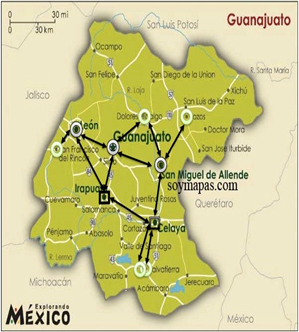 En la actualidad, los principales destinos turísticoscon que cuenta el Estado de Guanajuato son:1) la ciudad de León, con una vocación comercial y de negocios; 2) las ciudades patrimonio de la humanidad, Guanajuato Capital y San Miguel de Allende–Atotonilco, con una vocación cultural y;3) los cinco Pueblos Mágicos, Dolores Hidalgo, Jalpa de Cánovas, Mineral de Pozos, Salvatierra y Yuriria, con una oferta incipiente de menor escala (ver Mapa 2).