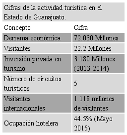 De acuerdo con información del Observatorio Turístico del Estado de Guanajuato, las cifras más relevantes con respecto a la actividad turística a nivel Estatal se presentan en la Tabla 1.