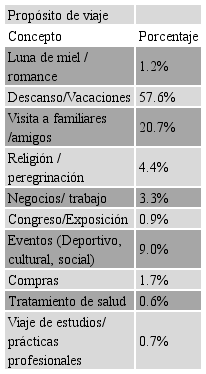 En la sección de planeación de viaje se les preguntaba el propósito de su visita. Las respuestas tuvieron la siguiente distribución que se muestra en la Tabla 2.