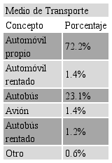 De igual forma en la sección de hábitos de viaje se preguntaba el medio de transporte con el que el visitante llegó al destino turístico estudiado. La distribución se puede consultar en la Tabla 3.