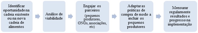 Integrar pequenos produtores em mercados modernos não depende apenas do fortalecimento dos pequenos agricultores para que se tornem melhores parceiros comerciais. Isso exige que o setor privado ajuste suas práticas comercias de acordo com as necessidades da agricultura familiar, criando condições para estimular uma relação comercial sustentável [tradução livre] (CIAT, 2012 apudFAO 2014c).