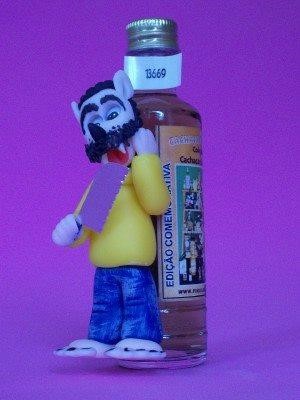 É, a gente usou o nome na cachaça a Língua do Lobisomem, por quê? Porque ela deixa a língua azul, e dizem que o Lobisomem tem sangue azul, então. A cachaça do Lobisomem é uma cachaça azul, com gosto de curaçau, a língua do Lobisomem seria um gosto de groselha, mas é um nome que a gente colocou, a gente tinha uma porção do Lobisomem, que era uma carne seca feita com champignon e alguma coisa, que a gente parou até de fazer, mas era muito saborosa, e não sobrava para o Lobisomem [...]. (LOPES, 2015a)