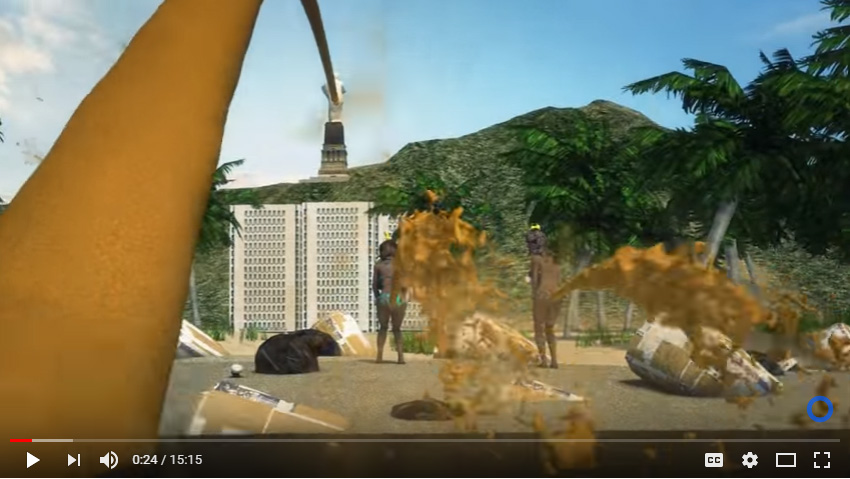 O medo também aparece na qualidade das construções, que reforçam mais uma vez a descrença nas instituições públicas. Há citações à queda da ciclovia, à não finalização dos estádios, aos problemas hidráulicos e elétricos da Vila Olímpica, assim como à possibilidade de desmoronamento das obras finalizadas. Os brasileiros são mostrados como preguiçosos: enquanto os pedreiros de uma obra não finalizada jogam futebol e descansam, a estátua do Cristo Redentor aparece sentada fumando um cigarro (provavelmente de maconha). Além disso, em referência à morte do jaguar durante a passagem da tocha, os brasileiros são chamados de “muito estúpidos”[13].