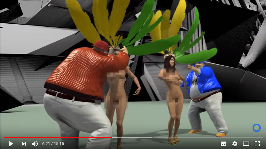 No que diz respeito à sexualidade, ela já pode ser vista em uma das primeiras cenas da compilação: duas mulheres negras (imaginário da “mulata”) de biquíni com seios grandes correm felizes em câmera lenta até caírem devido à sujeira na areia da praia. Na narração, temos o seguinte texto: “O Rio de Janeiro é uma ótima cidade, com lindas costas e vistas deslumbrantes, e é por isso que hospeda as Olimpíadas de verão de 2016”[14].