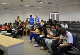Após a visita ao Museu, os participantes acima de 12 anos eram encaminhados a um auditório para responder o questionário da pesquisa, de forma voluntária.