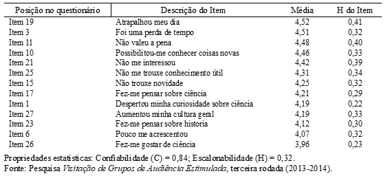 Uma análise de conteúdo dos itens da primeira escala mostrou que a maioria deles se referia a aspectos sociais da visitação com alguns itens de aspecto cognitivo entre eles. Por outro lado, a segunda escala ficou constituída quase exclusivamente por itens descrevendo aspectos cognitivos da visitação. Esse resultado sugere que os itens podem ser reagrupados nas duas dimensões principais do empoderamento como já havia sido reconhecido na análise da segunda rodada.