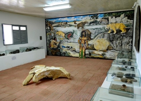 A fazenda abriga um rudimentar museu de história natural (Figura 4). E em seu acervo coabitam, sem as devidas informações, réplicas e originais de fósseis de animais pré-históricos, encontrados em sítios paleontológicos da região; instrumentos usados por paleoíndios; painéis ilustrativos e uma moldagem da Pedra do Ingá (ALMEIDA, 2009).