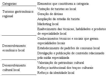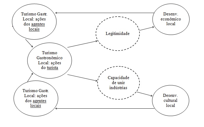Como contribuição teórica ainda, o estudo traz a ideia de que as relações entre o turismo gastronômico e o desenvolvimento regional não são unidimensionais. Evidencia-se que se trata de uma relação que é mais bem vista em uma perspectiva sistêmica na qual ela se retroalimenta, isto é, não se pode dizer simplificadamente que há uma relação do turismo gastronômico com o desenvolvimento local, tal como muitos autores já identificaram anteriormente, mas que esse mesmo desenvolvimento leva também ao reforço do turismo gastronômico local. Quanto mais o negócio se desenvolve em termos econômicos e culturais, mais a iniciativa em estruturar um turismo gastronômico se reforça.