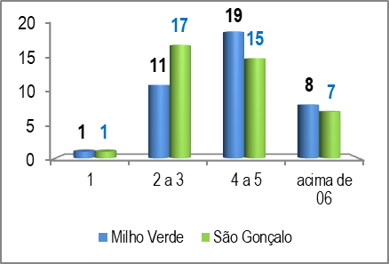 Quanto à renda salarial, percebe-se que os públicos que frequentam os dois distritos possuem um nível salarial relativamente “bom”, com a maioria recebendo acima de três salários mínimos. Nesse aspecto, os dados também se equiparam, entretanto, São Gonçalo recebe, ligeiramente, um público com melhor poder aquisitivo, com renda acima de 05 salários mínimos, conforme Figura 7.