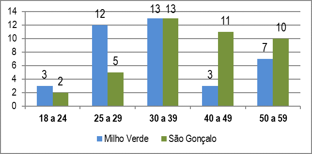 Os dados sobre a faixa etária confirmam o que já é relatado sobre o perfil do público em Milho Verde, onde predomina o público mais jovem, principalmente entre 25 e 29 anos. Em São Gonçalo, prevalece o público acima de 30 anos, o que pode ajudar a explicar as diferenças de comportamento desses dois públicos. Apesar de não podermos afirmar que o público por ser mais jovem possui comportamentos inadequados e que são causadores de conflitos na região, pode-se deduzir ser este um perfil de público que está em fase de descoberta e a maioria desacompanhada de familiares e que viajam com amigos (Figura 5).