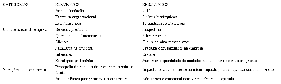 A preocupação com o impacto negativo do crescimento na família pode ser também destacada como típico de empreendedoras, além do reconhecimento da falta de preparação gerencial. Porém, esses resultados dão indicativos de que a ausência de autoconfiança das empreendedoras parece não influenciar negativamente na intenção de crescimento, pois nenhuma delas assumiu deliberadamente a atitude de manutenção ou redução. Ao contrário, ainda sem reunir os recursos necessários à alavancagem empresarial, pensam em crescer de diferentes formas, e entendem que o crescimento é uma consequência do fornecimento de serviços de qualidade e decisões estratégicas acertadas.