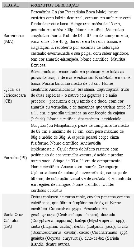 Em relação à pesca extrativa marinha, Bahia, Maranhão e Ceará ocupam posição de destaque entre os estados pesqueiros no Brasil (BRASIL, 2013a). Em Barreirinhas, a pesca se enquadra entre as quatro atividades econômicas mais importantes, junto com agricultura familiar, artesanato e turismo. Por sua vez, Jijoca de Jericoacoara, reconhecida como uma vila de pescadores, não apresenta a mesma produção. Nela, os pescadores migraram ou passaram a se dedicar a outras atividades vinculadas ao turismo (IABS, 2009a). Mesmo com uma reduzida extensão litorânea (0,98% do litoral brasileiro), o Piauí é importante em pesca. Parnaíba está entre os quatro principais municípios da costa, englobando 11 comunidades que vivem unicamente da pesca extrativa, principalmente nos Rios Parnaíba e Igaraçú (IABS, 2009b). A produção pesqueira é também importante em Santa Cruz Cabrália, juntamente com o Turismo.