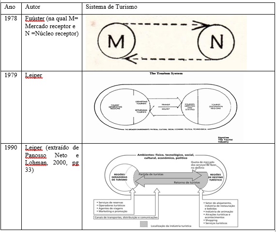 (Re)encontra-se na obra Fuster (1978), sobre a égide do núcleo do deslocar-se para encontrar um outro e voltar, a razão fundamental do espaço/tempo do turismo (pg.38): deslocamento cíclico (viagem) + permanência temporária (hospedagem). Ainda nesse viés, Fuster aponta uma sistematização das correntes turísticas, que se compararmos com a futura proposição sistêmica de turismo de Leiper (1979), hoje tida como uma das mais usadas em turismo (Panosso Neto, 2011), reflete a evolução do rumo teórico conceitual.