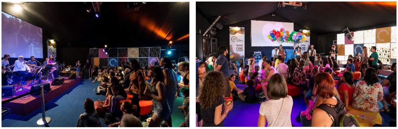 A abrangência do escopo do evento também passou a demandar novos cuidados: para complementar a programação, que propunha o diálogo do cinema com outras áreas culturais, após as exibições dos filmes, eram realizados shows musicais e performances com artistas regionais selecionados pela produção (fig.5), que rapidamente se tornaram um atrativo para a população local e das cidades vizinhas e trouxeram um público crescente a cada ano.