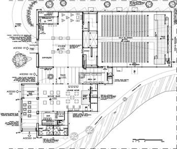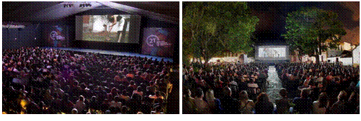 Do ponto de vista da acessibilidade, o piso interno foi todo nivelado, e todas as rampas e escadas de acesso foram equipadas com guarda-corpo. Já a qualidade técnica das exibições dos filmes, tanto na tenda como na praça (fig.22) garante a participação apropriada de diretores e produtores.