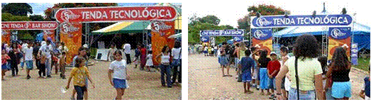 A partir da 5º edição, uma terceira tenda, também de circo, a Tenda Tecnológica, foi incorporada para abrigar a exibição e demonstração de equipamentos do audiovisual como câmeras, gruas, mesas de edição, dentro do conceito de formação de público especializado (fig.6). Os impactos gerados com o aumento de público repercutiam no fluxo do trânsito ao redor do Largo da Rodoviária, na movimentação de vendedores ambulantes, na capacidade dos espaços construídos, causando preocupação com a segurança dos usuários por parte da produção. Assim, constatou-se a inadequação das tendas e a produção passou a procurar novas alternativas no mercado (Hallak, 2018).