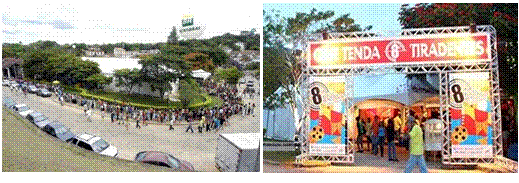 Já na 8º edição, a distribuição dos espaços no Largo da Rodoviária procurou trazer um melhor aproveitamento da área (fig.8). Para não danificar os gramados existentes foi instalado um piso elevado em todo o interior das tendas, que aumentou o conforto do usuário, permitindo a acessibilidade, e a superação de problemas relativos a alagamentos. Ainda não havia necessidade de aprovação do projeto no IPHAN ou na Prefeitura, porém já existia a demanda de atendimento às exigências do Corpo de Bombeiro quando à segurança contra incêndio e pânico (Vargas, comunicação pessoal, setembro de 2018).