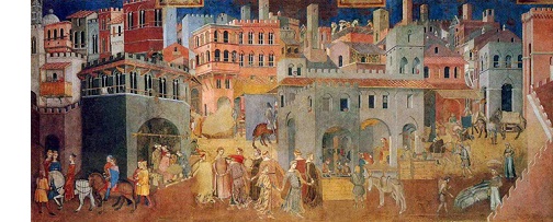 Na pintura do Renascimento, pelo contrário, há continuidade na figuração da profundidade e, gradualmente, os pintores renascentistas vão-se dando conta do importante papel que a linha–do–horizonte pode ter na composição da intriga do quadro.