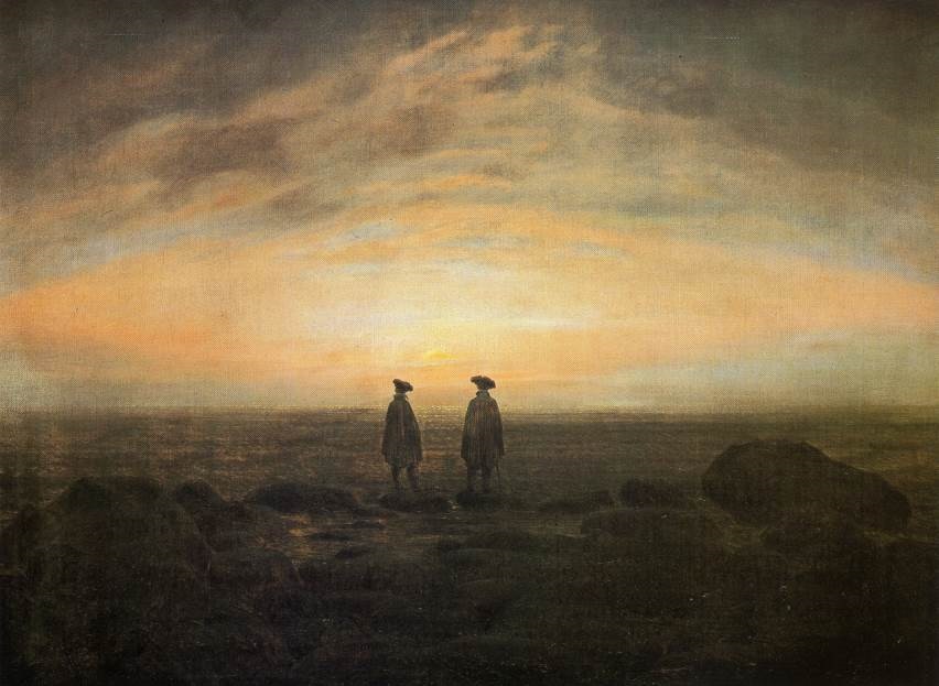 O céu estrelado é já uma eficaz imagem de infinito, já tem qualquer coisa de concreto – pontos luminosos: uma infinidade deles –; e são inúmeras as pinturas de céus estrelados. Contudo é uma imagem carente de dinamismo, na medida em que não suscita um movimento, antes um parar. Nas noites estreladas de Verão, contemplamos as estrelas e, quando olhamos para elas, pensamos no infinito. Mas não é naturalmente que consideraremos o nosso destino, porquanto esta é uma noção com um dinamismo ínsito que não encontra eco na estaticidade do céu estrelado. O céu estrelado, ainda que sendo uma eficaz imagem de infinito, é carente de eficácia existencial. (O horizonte de mar, ao pôr–do–sol, pelo contrário, faz perguntas.)