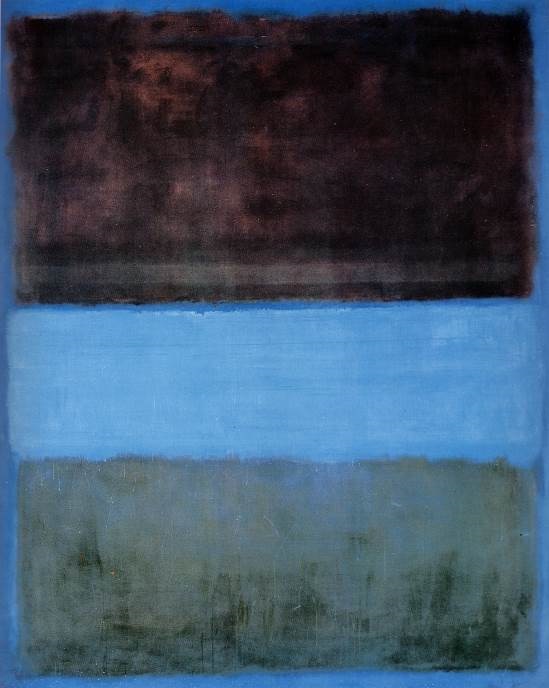 (Perturbante é o caso de a linha–do–horizonte praticamente ter desaparecido das composições contemporâneas, embora porventura seja possível dizer que ela é a figuração exclusiva dos quadros de Rothko. De facto, considerando a dimensão real destes quadros e a posição do observador relativamente a eles é fácil imaginar que estamos perante grandes horizontes, “infinitos campos de cor” [69] , cujo carácter – às vezes azul e sereno, às vezes amarelo e vibrante, às vezes vermelho e infernal – é comunicado pela cor. O reiterado testemunho da comoção religiosa que estas obras causam parece não renegar esta interpretação[70].)