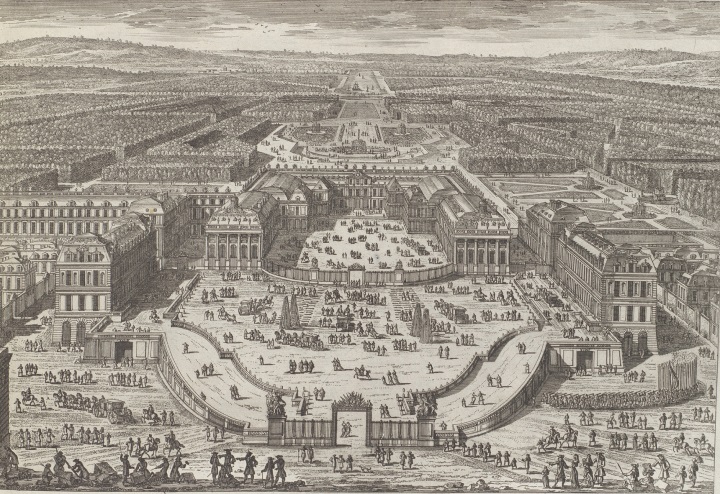 Os jardins da Antiguidade e da Idade Média eram interiores a um recinto, ordenados segundo uma regra geométrica e com frequente participação de elementos arquitectónicos (lagos, fontes, pérgulas, bancos, estatuária...) – eles participam da casa, numa altura em que a Natureza era considerada desumana. Os jardins ditos italianos, que se sucedem cronologicamente aos primeiros, aparecem normalmente em posição contígua à casa mas já abertos, pelo lado oposto – lançados como um balcão à paisagem e ao horizonte, procurando criar uma ponte com esta, se bem que numa posição ainda resguardada. O jardim francês irradiando longinquamente perímetros sucessivos a partir da casa, demonstra a pretensão do domínio humano da paisagem, espraiando até ao infinito uma ordem artificial; quase se separa da casa – quer criar uma paisagem e um horizonte, conformados à ordem e estrutura humanas, patentes na arquitectura e na cidade, dominados por uma regra geométrica[71]. O jardim francês não aceita a provocação do horizonte natural, mas compreendendo já o seu poder, constrói para si um horizonte, à imagem e semelhança da mentalidade do tempo: uma paisagem ordenada e previsível, para contemplação de um infinito domesticado. Desenha-se o território entre os 300 metros – em que se perde a noção de profundidade através da visão binocular – e os 3000 metros – aproximadamente a distância a que, por causa da curvatura de terra, parece estar a linha do horizonte[72]. Os casos exemplares são, evidentemente, aqueles que saem da régua de Le Nôtre, na segunda metade do século XVIII: Vaux, Versalles, Saint–Germain, Chantilly e vários outros parques na periferia de Paris. Mas, ao longo do século XVIII este modo de “corrigir a natureza para obter verdadeira beleza”[73] difunde-se pelo resto da Europa: os casos de Badmington, na Inglaterra e Nymphenburg em Munique na Alemanha, são bem exemplo disso.