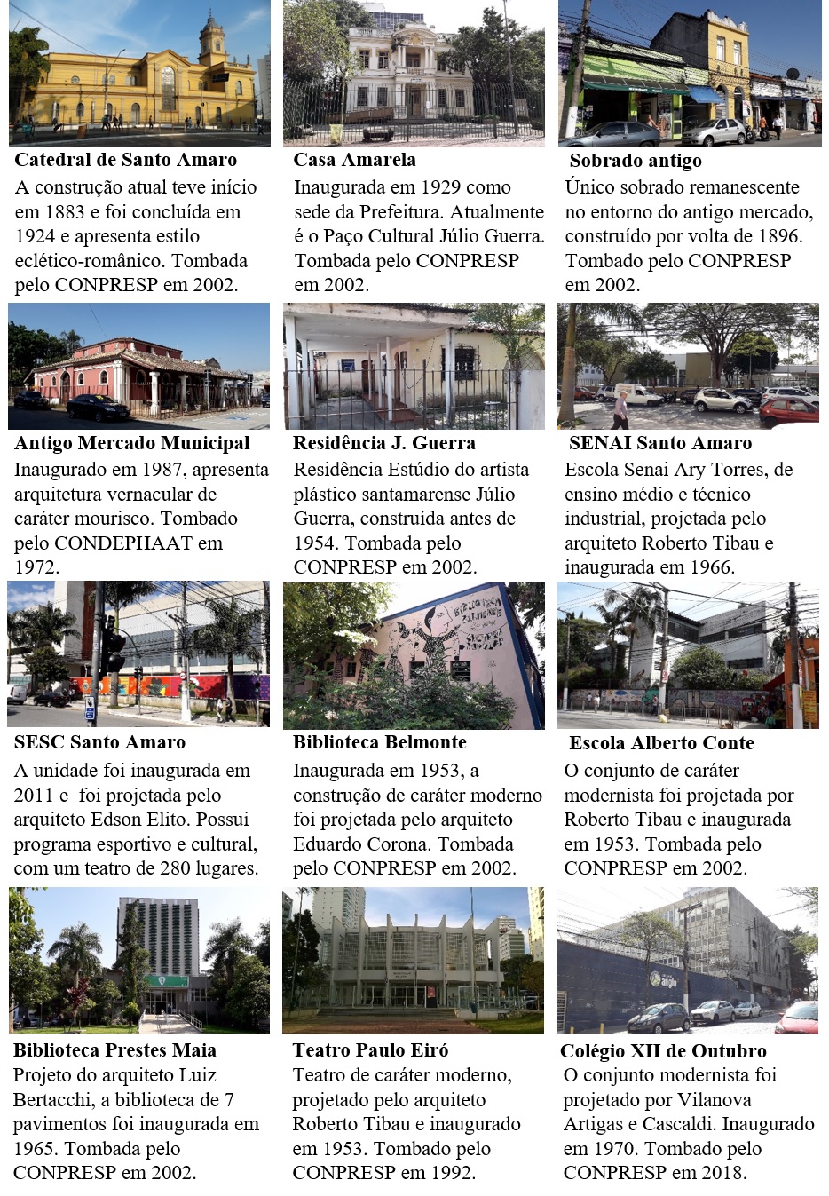 Diante desse cenário, iniciou-se uma pesquisa cujo objetivo principal é colaborar com a valorização e consolidação da identidade da cultura local de Santo Amaro a partir do resgate, registro e divulgação do seu patrimônio arquitetônico. Para alcançar este objetivo, foram elaborados três roteiros turísticos, sendo dois arquitetônicos e um paisagístico, para serem divulgados para o turista urbano, o morador do próprio bairro, ou para as pessoas interessadas em arquitetura e história da cidade. Os dados obtidos estão divulgados em uma base de consulta on line ao material iconográfico e textual atualizado e confiável, para acesso público aos cidadãos, estudantes e pesquisadores (Santo Amaro, 2020) e que contou com o apoio do MackPesquisa da Universidade Presbiteriana Mackenzie.