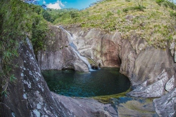 Quanto ao potencial hidrológico, além de inúmeras nascentes, cursos d’água e piscinas naturais, que encontram-se distribuídas por todos os municípios situados na divisa territorial com a UC, circuitos de cachoeiras acessíveis ao público por trilhas têm destaque, e constituem o conjunto de atratividades turísticas no parque – “Vale Encantado” (Figura 3) e “Vale Verde”, acessados pela portaria de Alto Caparaó (MG), e “Cachoeiras da Macieira”, acessado pela portaria de Pedra Menina (ES).