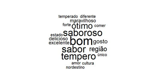 Quanto às impressões dos turistas sobre os pratos consumidos, as análises textuais feitas pelo Iramuteq apontaram que os respondentes destacaram aspectos como o sabor presente nos pratos e a importância de ingredientes e temperos característicos da culinária e cultura do estado, conforme se observa na seguinte resposta: “São pratos de sabores únicos. Embora sejam produzidos também em outras regiões, o tempero do estado em questão tem um diferencial ao paladar e ao olfato. A empratação é simplesmente atraente”. Além disso, de acordo com a análise do software, os termos com mais significância caracterizavam os pratos como sendo “bom”, “delicioso”, “maravilhoso” e “excelente”, demonstrando a valorização e a imagem positiva que a gastronomia paraibana deixou junto aos turistas. Cabe ressaltar que os termos citados anteriormente, que adjetivavam positivamente os pratos paraibanos, apareceram ao longo de todo o banco de dados. Assim, remete a uma imagem positiva dos pratos, sem quaisquer associações negativas junto a esses adjetivos. Ademais, tais percepções dos turistas vão ao encontro do que é posto por Simon, Etges e Minasi (2015) quanto à crescente valorização das particularidades presentes em um destino por parte dos turistas dentro do turismo gastronômico. A nuvem de palavras a seguir sintetiza os principais elementos citados pelos respondentes em suas impressões sobre os pratos que consumiram: