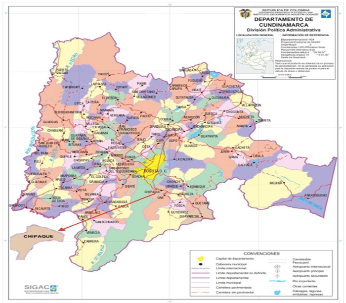 Instituto Geográfico Agustín Codazzi (IGAC). (1998). Mapa. Ubicación del municipio de Chipaque en Cundinamarca. Bogotá: autor.