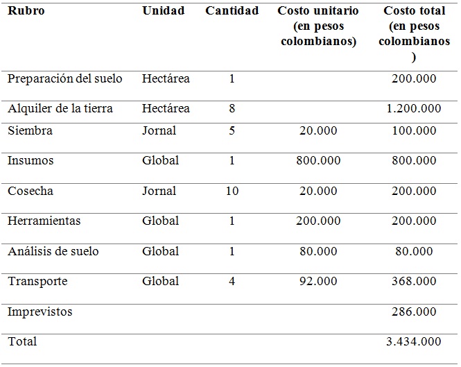 Ángel, otro campesino de la región, sí lleva tablas de contabilidad e incluye costos programados, como la mano de obra, el costo de la tierra, los insumos, las herramientas y los imprevistos, puesto que “siempre se puede presentar algo, principalmente por el clima, y si uno no tiene el dinero para cubrir los imprevistos, puede perder la cosecha por completo”, afirma. Los imprevistos incluyen máquinas o herramientas que se dañan y costos de transporte y de almacenamiento inesperados.