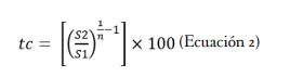 (Ecuación 2)tc= [(S2/S1) ^(1/n)-1]x100 (Ecuación 2)